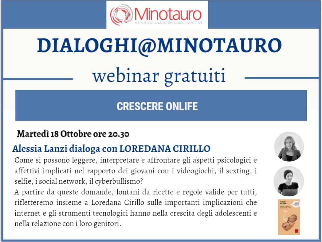 Martedì 18 ottobre alle 20.30 Alessia Lanzi dialogherà con Loredana Cirillo sul tema “Crescere onlife”.