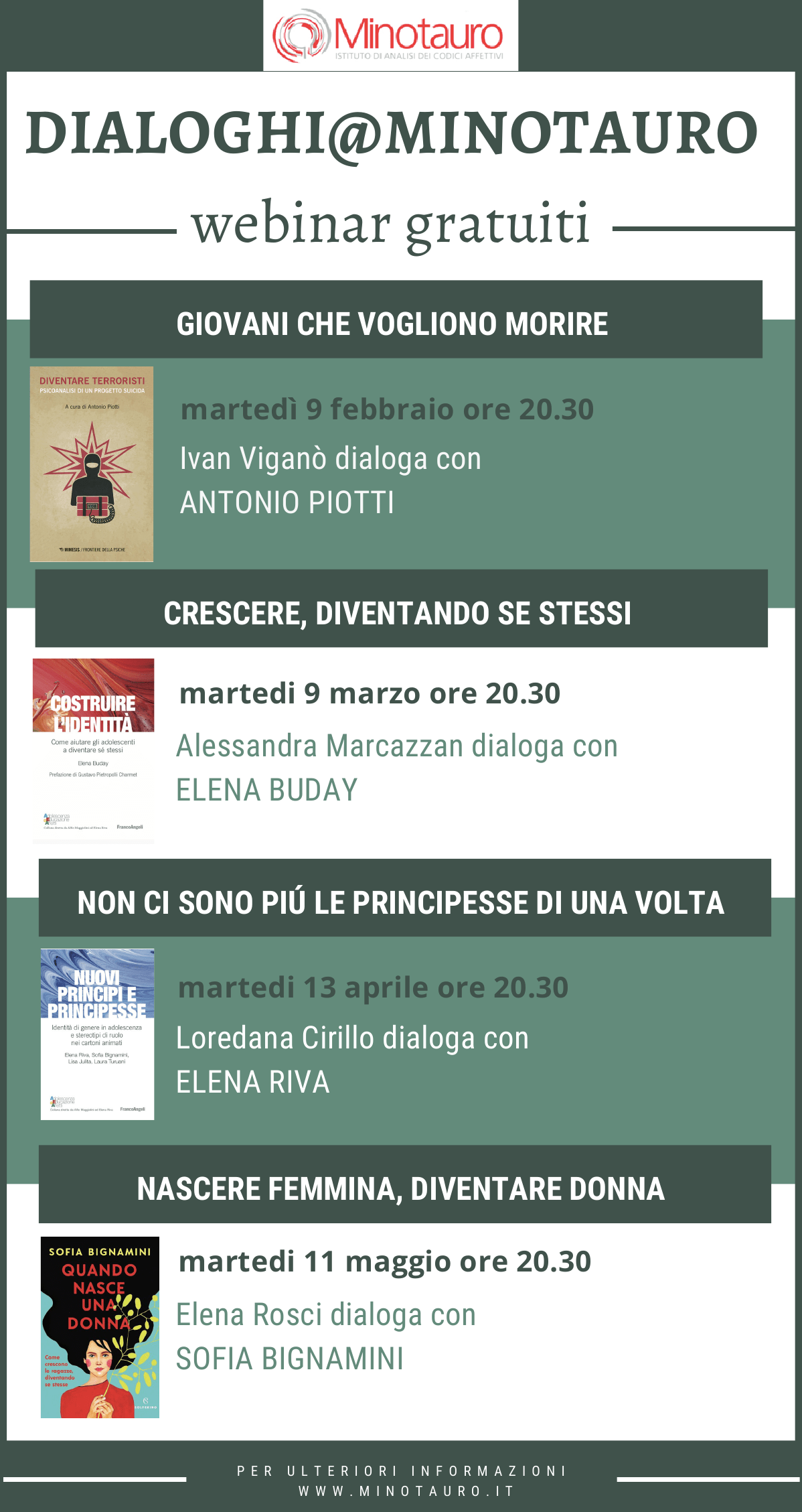 Dopo il successo del primo ciclo di webinar gratuiti Dialoghi@Minotauro, proponiamo nuovi eventi online aperti a tutti sull’adolescenza e sulla psicologia evolutiva.