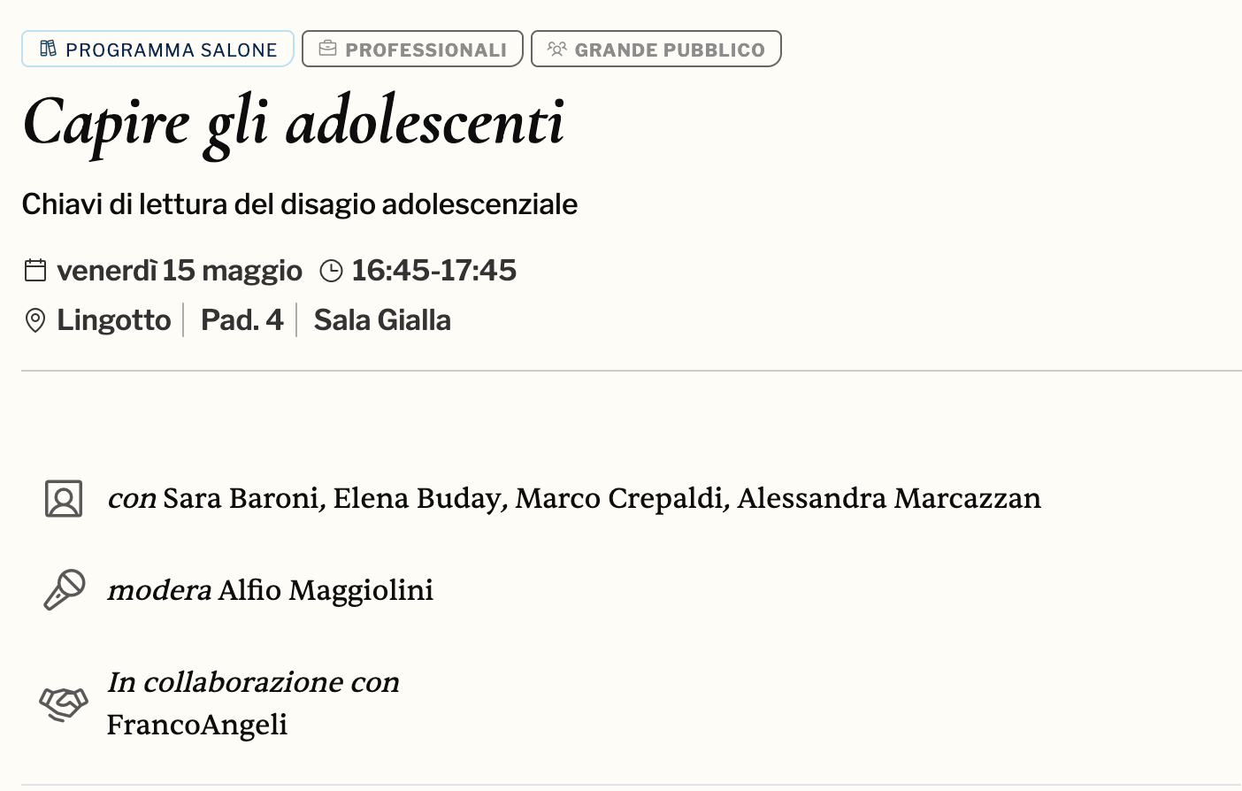 • Scheda Evento: https://www.salonelibro.it/programma-eventi/capire_gli_adolescenti/18745