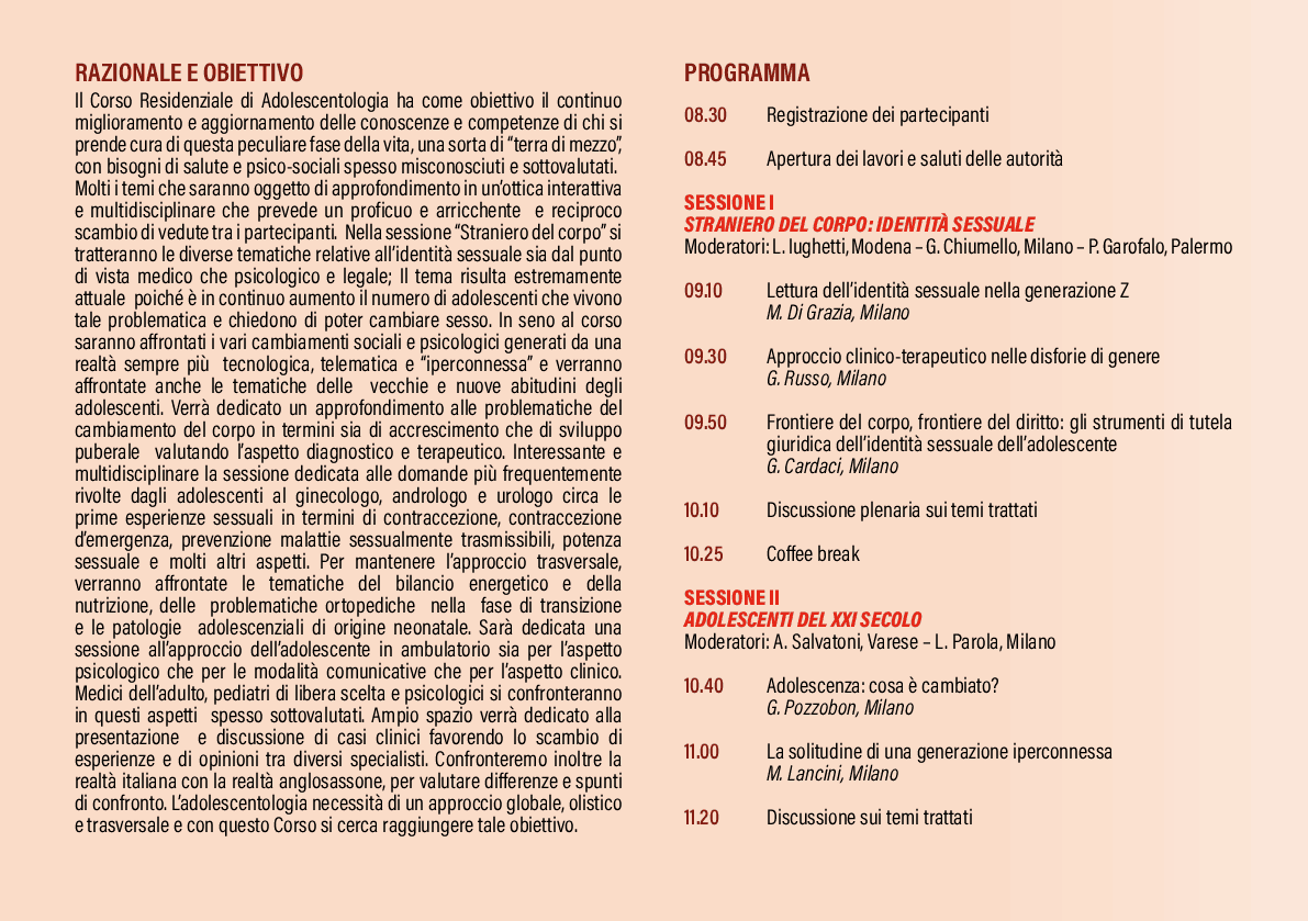 Corso residenziale di adolescentologia