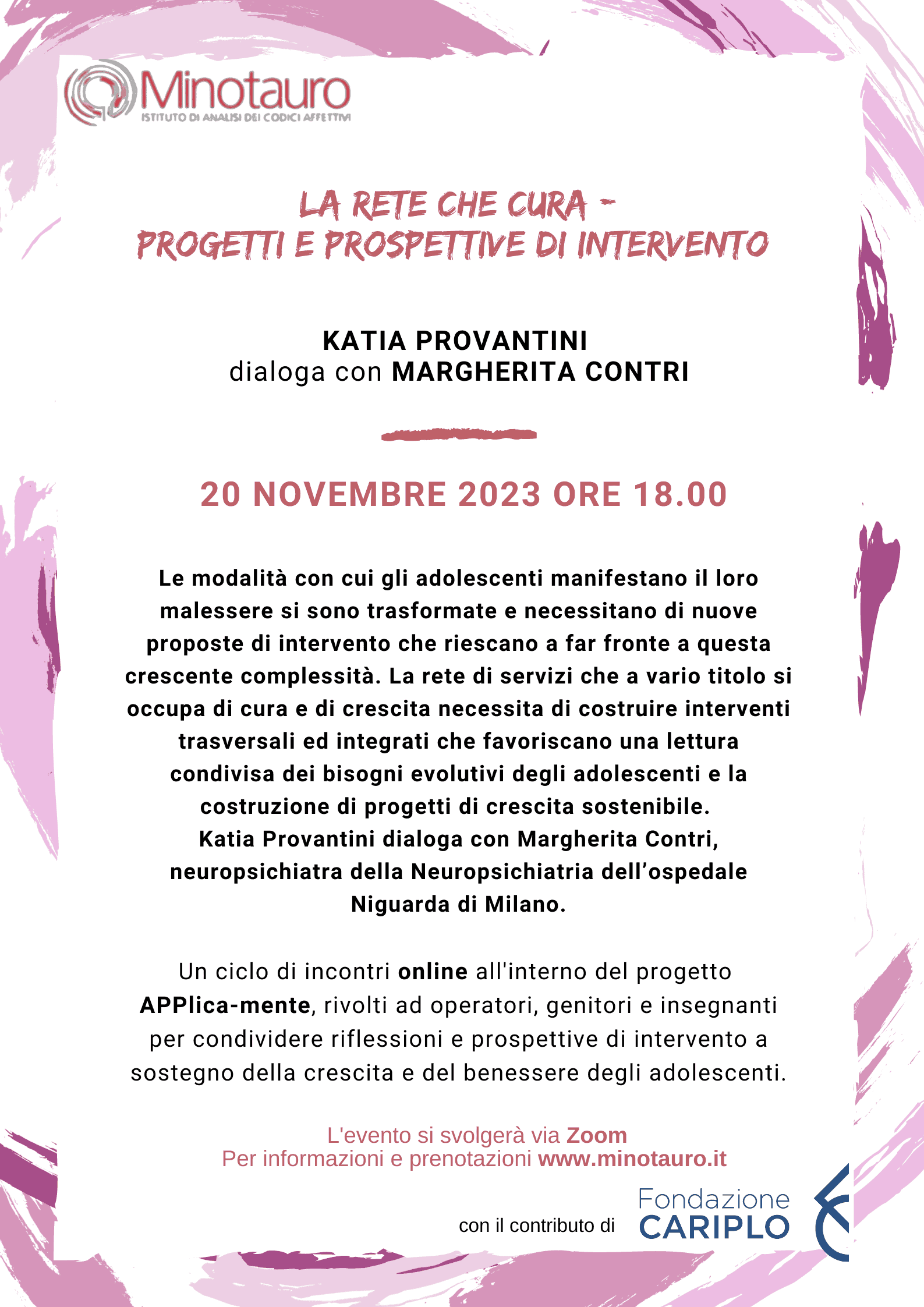 Lunedì 20 novembre Katia Provantini e Margherita Contri hanno dialogato sul tema “La rete che cura. Progetti e prospettive di intervento”.