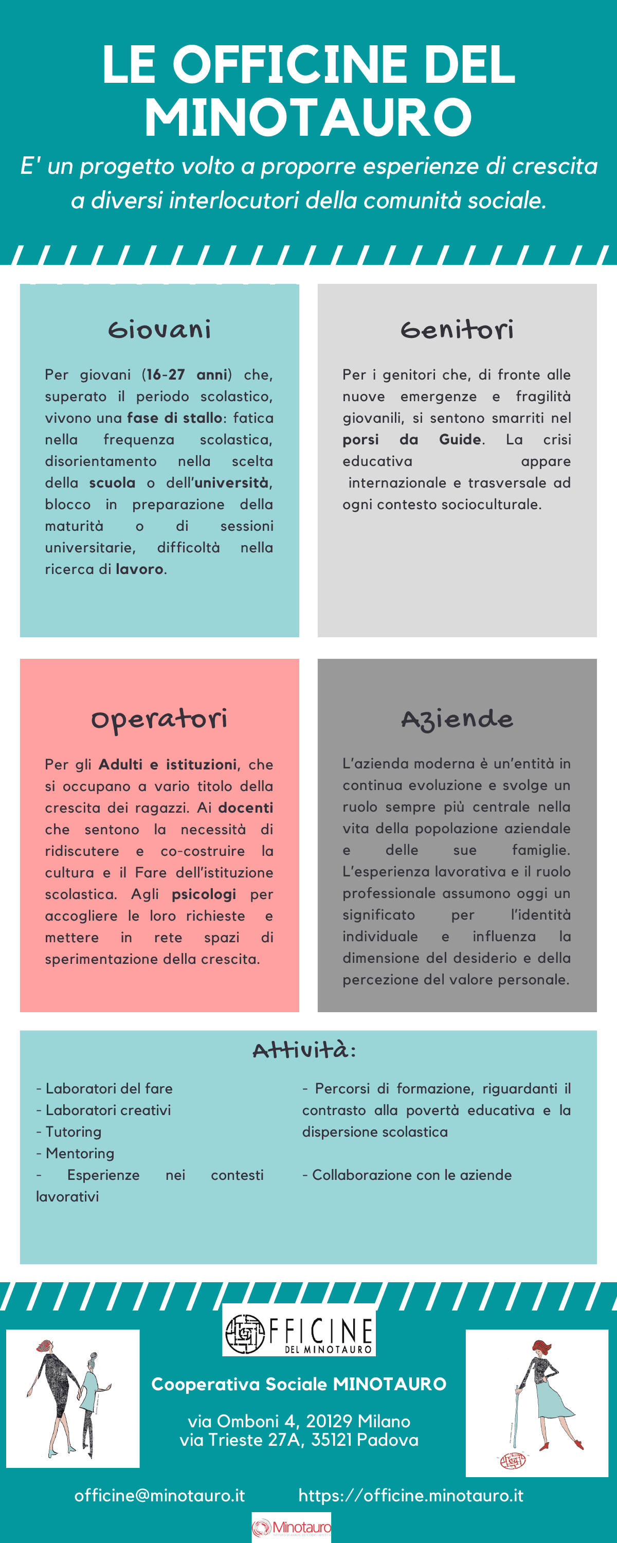 Per maggiori info, consulta la sezione dedicata e il sito del progetto: officine.minotauro.it