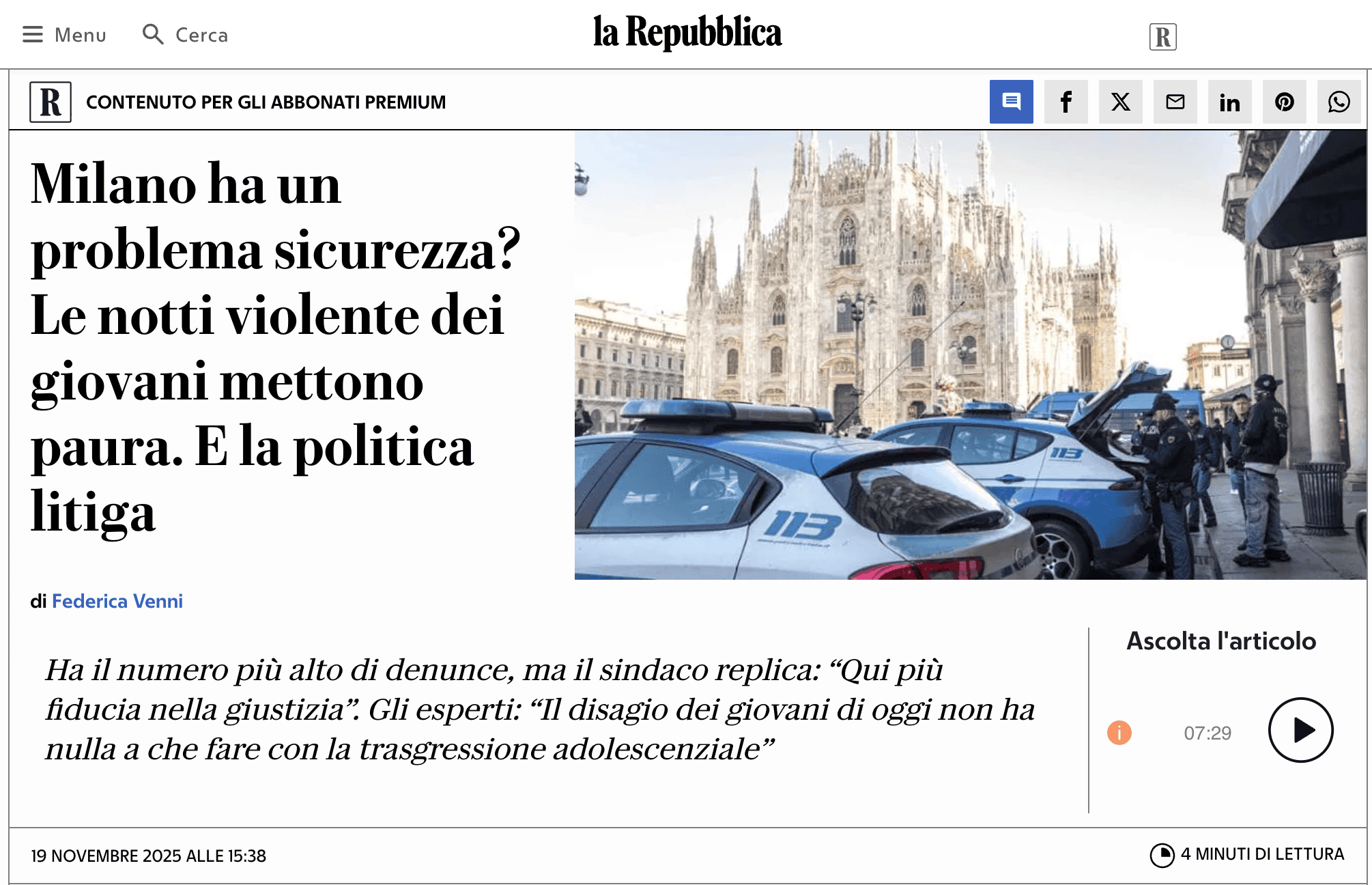Condividiamo l’articolo scritto da Federica Venni e pubblicato da LaRepubblica il 19 Novembre 2025.