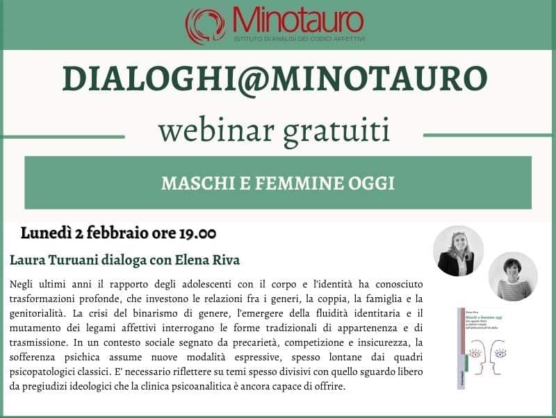 [webinar, 2 febbraio 2026] DIALOGHI@MINOTAURO – MASCHI E FEMMINE OGGI, con Elena Riva e Laura Turuani